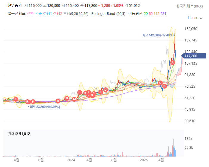 신영증권은 자사주 비율이 52~53%로, 국내 상장사 중에서도 가장 높은 수준입니다. 정부의 자사주 소각 의무화 정책이 현실화될 경우, 신영증권은 소각 압박을 가장 강하게 받을 수밖에 없습니다. 실제로 신영증권의 주가는 최근 자사주 소각 기대감에 따라 큰 변동성을 보이고 있으며, 투자자들도 소각 가능성을 적극적으로 반영하는 분위기입니다.