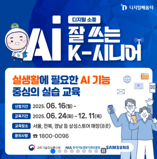 - 디지털배움터·스마트배움터 등 무료 교육을 적극 활용해보세요. 세대불문, 누구나 AI 활용 역량을 키울 수 있습니다.