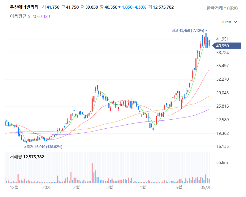 두산에너빌리티 주가 차트(2025.05.30. 기준)