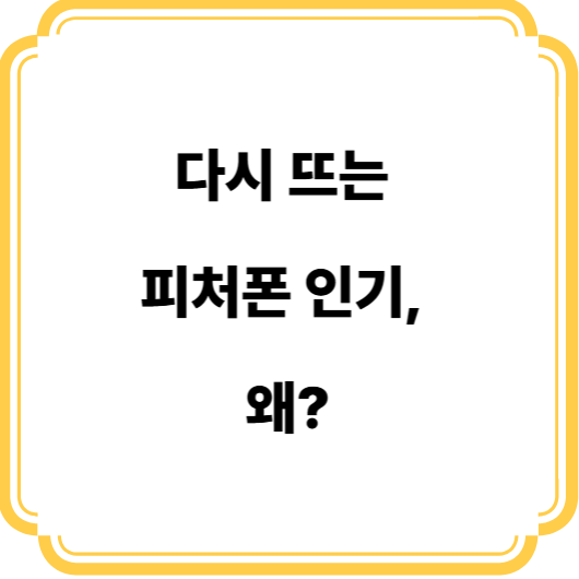 안녕하세요, 여러분! 요즘 따라 스마트폰 화면을 하루 종일 들여다보는 게 지치고 피곤하진 않으셨나요? 저도 어느 날 그런 생각이 들더라고요. 그러다가 우연히 친구가 쓰고 있는 피처폰을 보게 됐는데, 그때부터 저도 다시 피처폰의 매력에 빠져들기 시작했습니다. 단순하고, 직관적이고, 뭔가 아날로그 감성도 있고... 그래서 오늘은 요즘 다시 인기 몰이를 하고 있는 피처폰에 대해 이야기해보려고 해요.