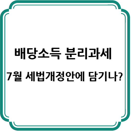 2025년 7월 세법개정안 발표를 앞두고 배당소득 분리과세가 현실화될지 투자자들의 관심이 집중되고 있습니다. 제도 변화에 따라 투자 전략을 미리 점검하고, 정부 발표 및 국회 논의 동향을 꾸준히 체크하는 것이 현명한 대응입니다.